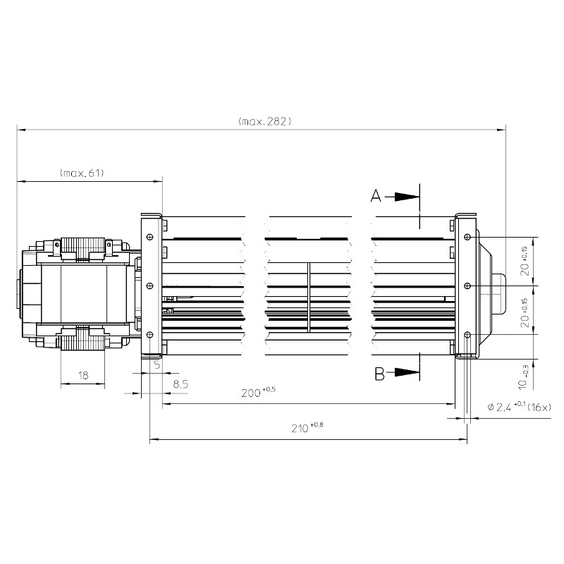 EBM tangentieel ventilator voor pelletkachels type QL4/0020A32-2118LH-463