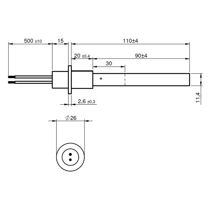 Gloeispiraal / Startpen Quartz met flens 330W 110mm
