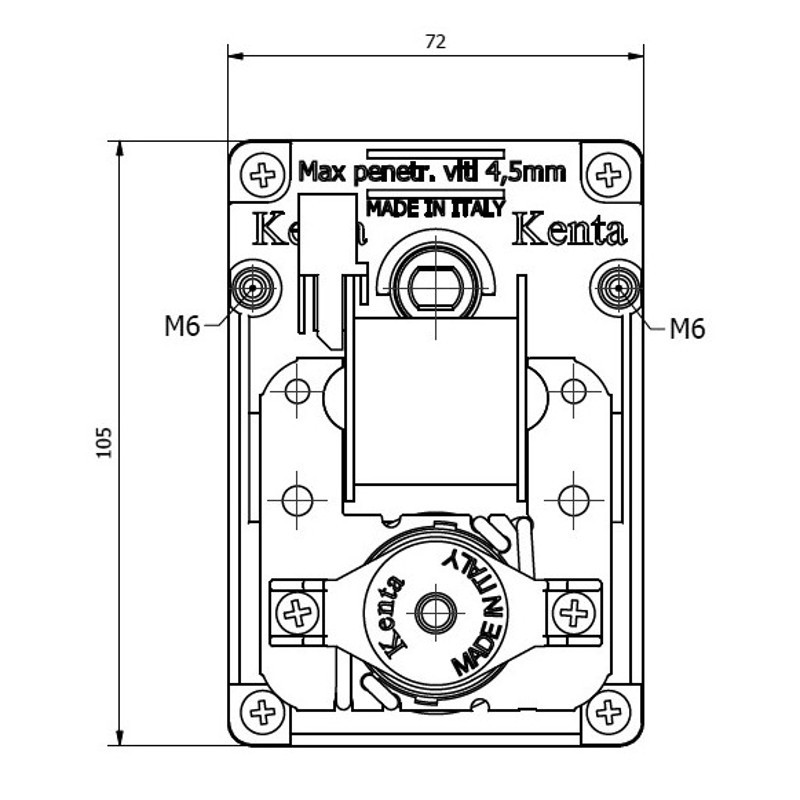 Kenta Vijzelmotor type K9177171. Snelheid: 2 rpm. As: ja. As Ø: 9,5mm. Watt: 47W. Torsie: 17Nm. Rotatie: rechts. Encoder: nee. Voltage: 220/240V 50-60Hz. Magnetic core: 40mm