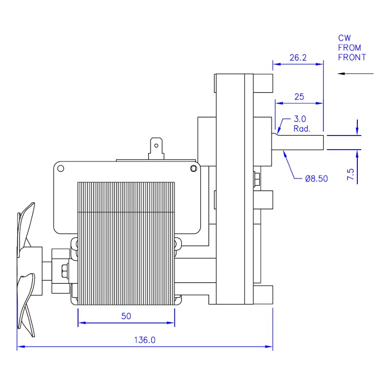 Mellor Vijzelmotor type FB1304 – 8rpm met as Ø8,5mm